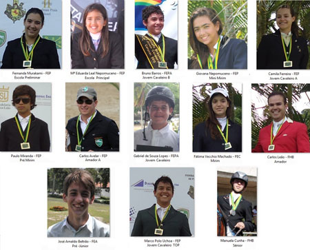 Entre os campeões pernambucanos estão Fernanda Murakami (Escola Preliminar – 0,70 cm); Mª Eduarda Leal Nepomuceno (Escola Principal – 0,90 cm); Giovana Nepomuceno Mota (Mini Mirim – 1 m); Camila Ferreira (Jovem Cavaleiro A – 1,10 m); Paulo Miranda (Pré-Mirim – 1,10 m); Carlos Avelar (Amador A – 1,10 m) e Marco Polo Uchoa (Jovem Cavaleiro Top – 1,30 m).