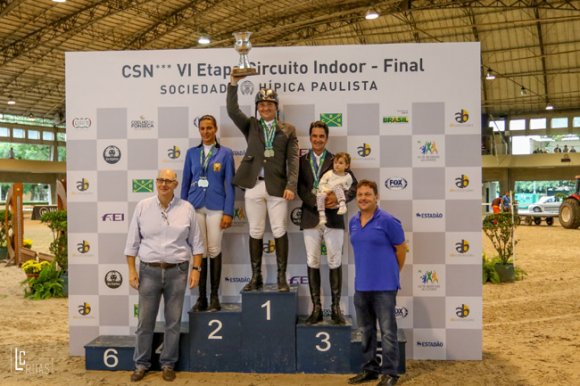 Depois de seis etapas o Circuito Indoor AB Concessões 2015 chegou ao fim neste domingo, 29/11, na Sociedade Hípica Paulista, em São Paulo. Foram 28 os conjuntos concorrendo no GP, a 1.50 metro com armação de Caio Sérgio de Carvalho, dos quais os 12 melhores voltaram para a 2ª e decisiva volta. Sagrou-se campeão o top paranaense Daniel Khury com Wangu Cooper, duplo zero, 42s21, resultado que também lhe garantiu o vice-campeonato na contagem geral do Circuito.