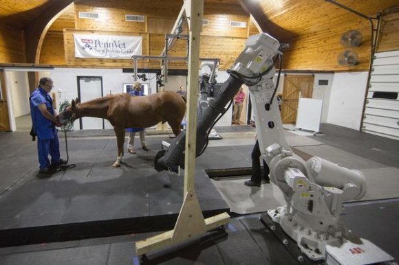 Um novo tipo de aparelho de tomografia computadorizada no New Bolton Center Hospital for Large Animals – hospital-escola veterinário da Universidade da Pensilvânia, EUA – está revolucionando a área médica. Ele permite que os cavalos permaneçam em pé e acordados durante o exame, que é feito por dois braços mecânicos que se movem ao redor do animal, fornecendo imagens em alta qualidade, inclusive em 3D, com detalhes anatômicos nunca vistos antes.